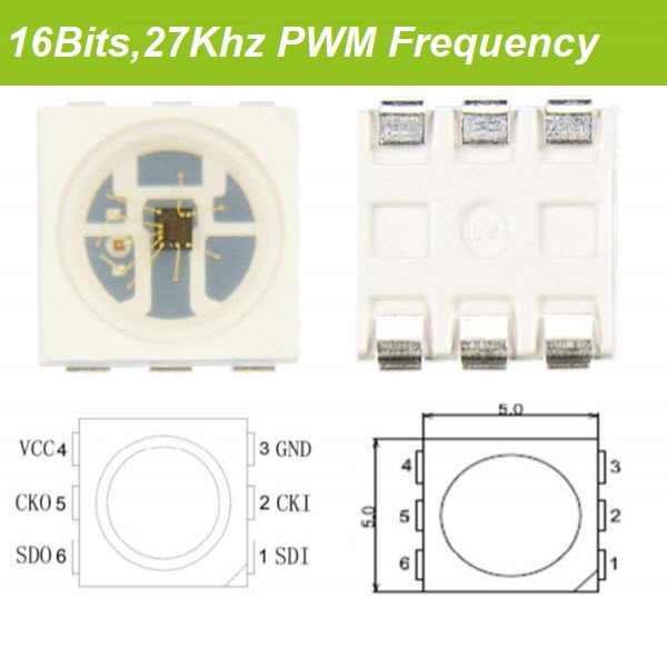 | APA102HB5050 | SMD5050-PLCC6 | DC5V | APA102HB Built in | 16bits,65536 | 27Khz | RGB | 1000pcs/Reel |
